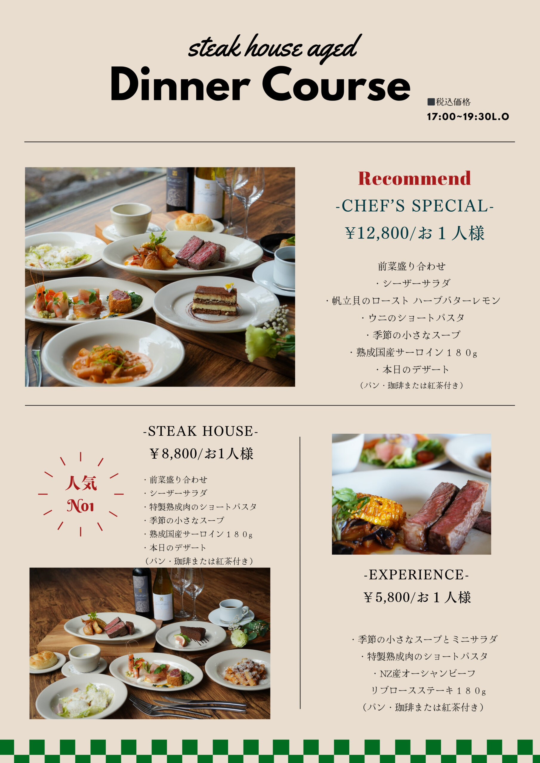 下記コースメニューは19:30までのご注文とさせていただきます。