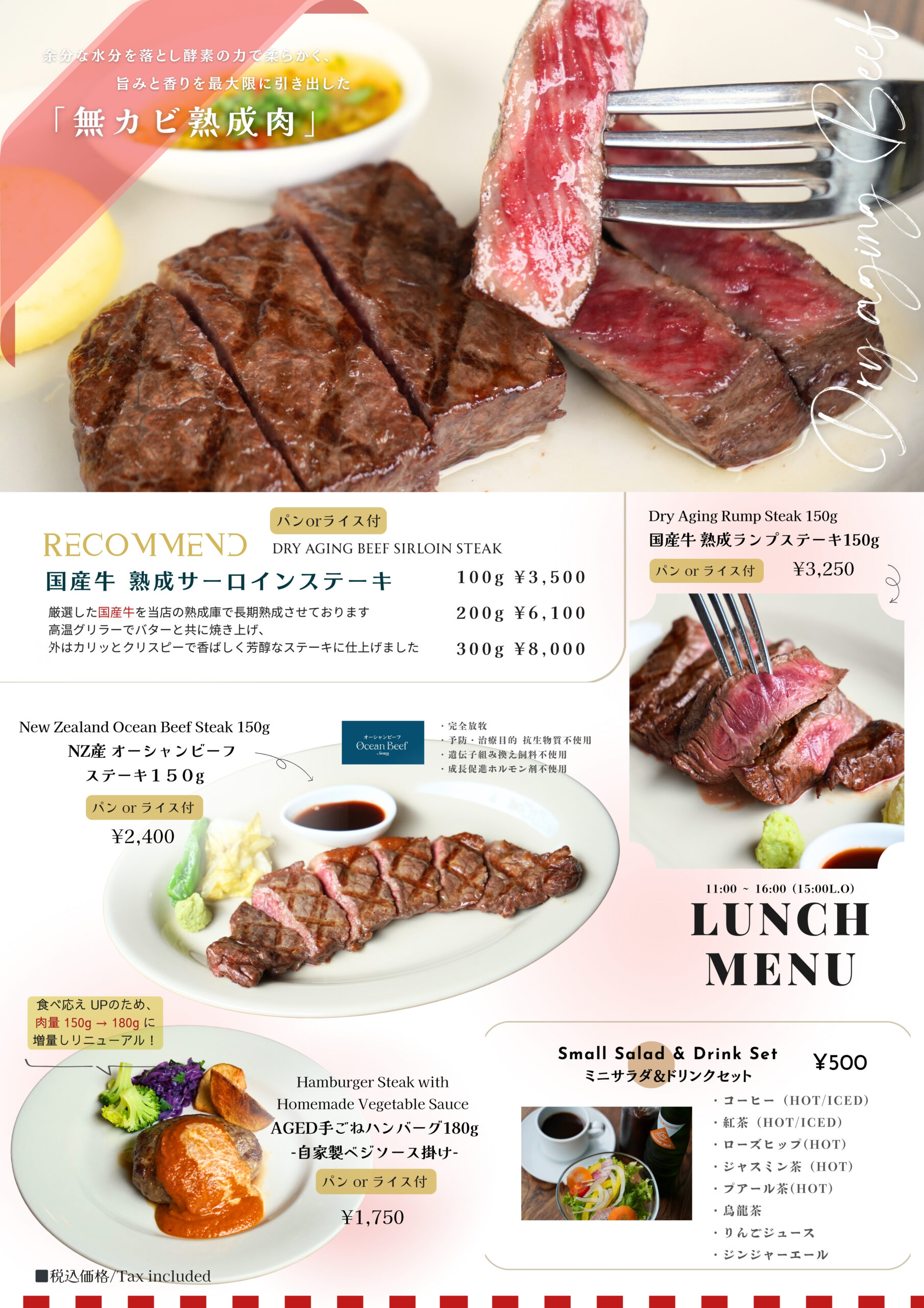 ・熟成US牛アウトサイドステーキ180g、ライス、マッシュポテト